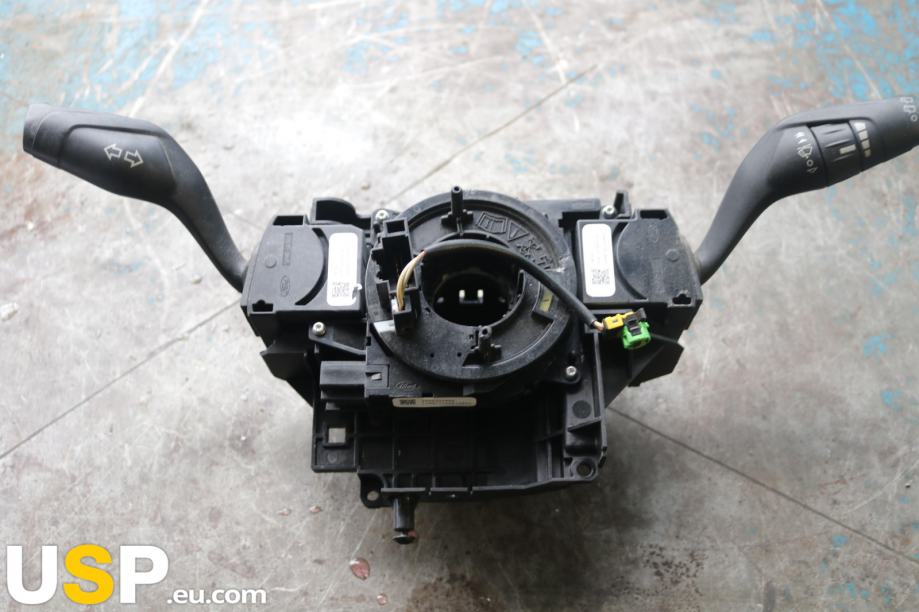 Ta del je kombinacija senzorja kota volana in komand ročice, ki se uporablja v vozilih Ford Focus MK3. Senzor kota volana spremlja kot zavijanja volana, kar je pomembno za funkcije kot so elektronski stabilizator in sistem za pomoč pri parkiranju. Komande ročice omogočajo upravljanje različnih funkcij vozila, kot so zvočnik in drugi sistemi. Del je pomemben za varnost in udobje vožnje.Znamka: Ford