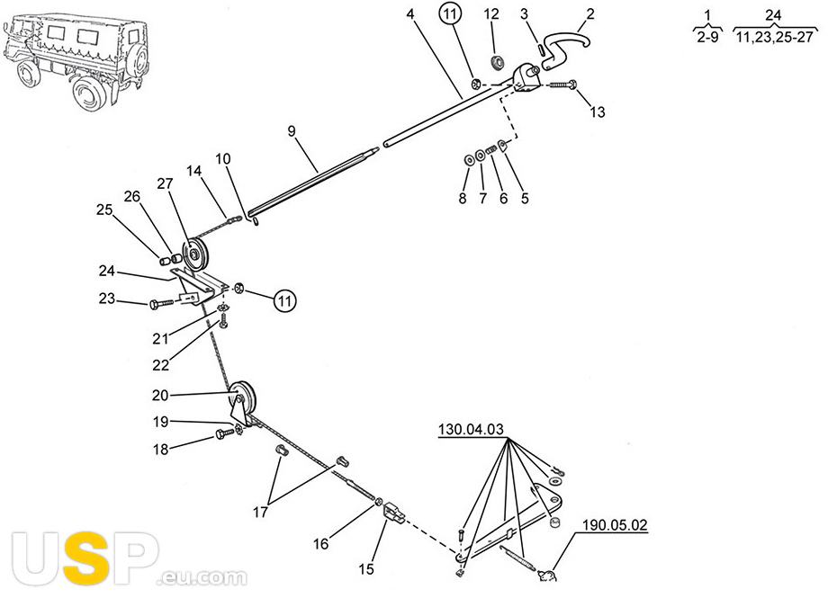 Številka 1 na sliki.Komponenta ročne zavore je del sistema za ročno zaviranje vozila. Sestav ročaja ročne zavore vključuje delove, ki omogočajo učinkovito delovanje ročne zavore. Ta del je pomemben za varnost vozila in zagotavlja, da se vozilo lahko varno ustavi z ročno zavoro.