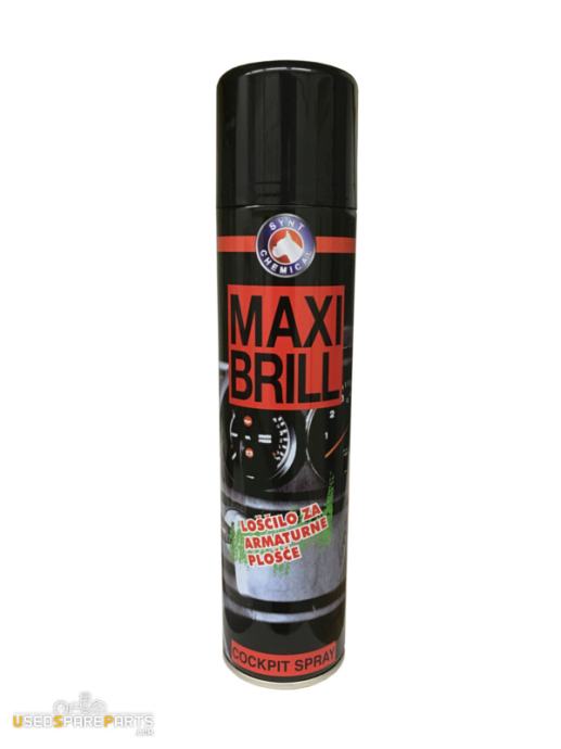 Sprej MAXI BRILL je dišavi izdelek za čiščenje, zaščito in obnovitev različnih avtomobilskih površin, kot so plošče, plastični deli, guma, les, smola, vinil in usnje. Pušča nežen zaščitni film na obdelani površini.