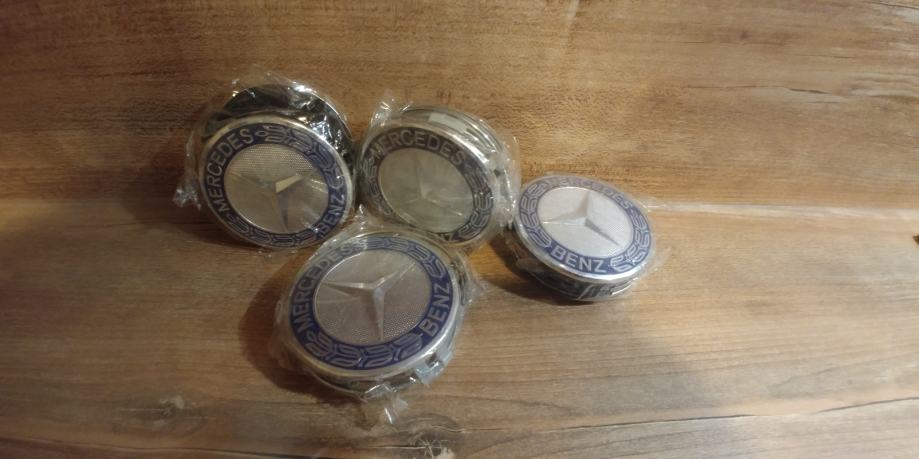 Prodam 4 nove, zapakirane sredinske pokrovčke za platišča za Mercedes-Benz, premer 75mm.