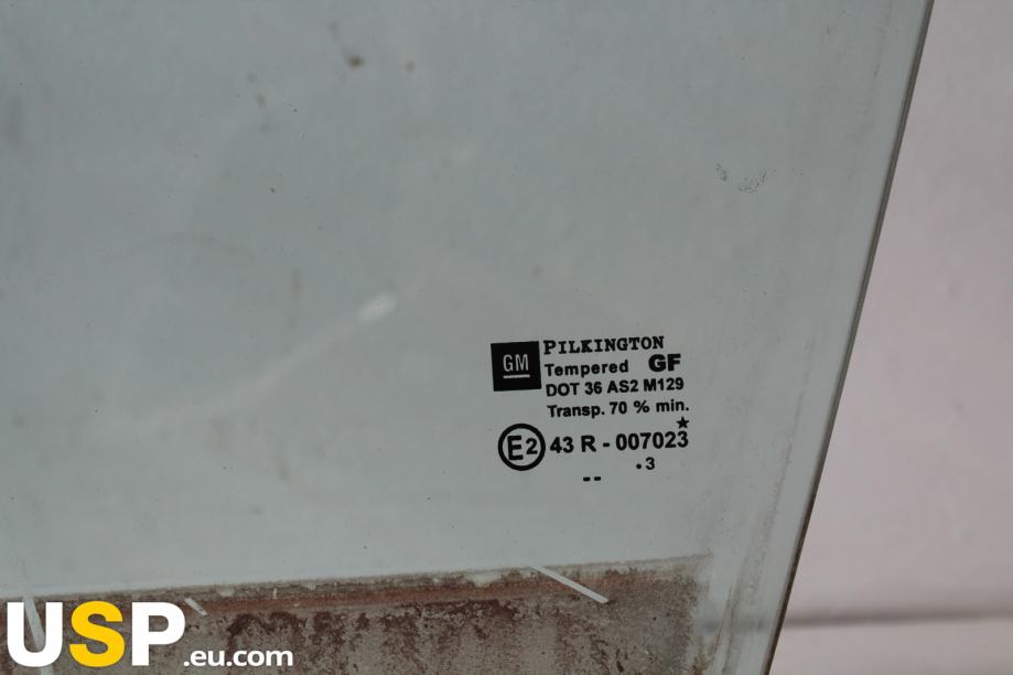 Stransko steklo zadnjega levega vrata je del zunanjega okvirja vozila, ki zagotavlja vidljivost in zaščito potnikov. Je pomemben del strukture vozila in prispeva k njegovi celovitosti. Steklo je zasnovano tako, da omogoča dobro vidljivost in varnost v vožnji.Znamka: Opel