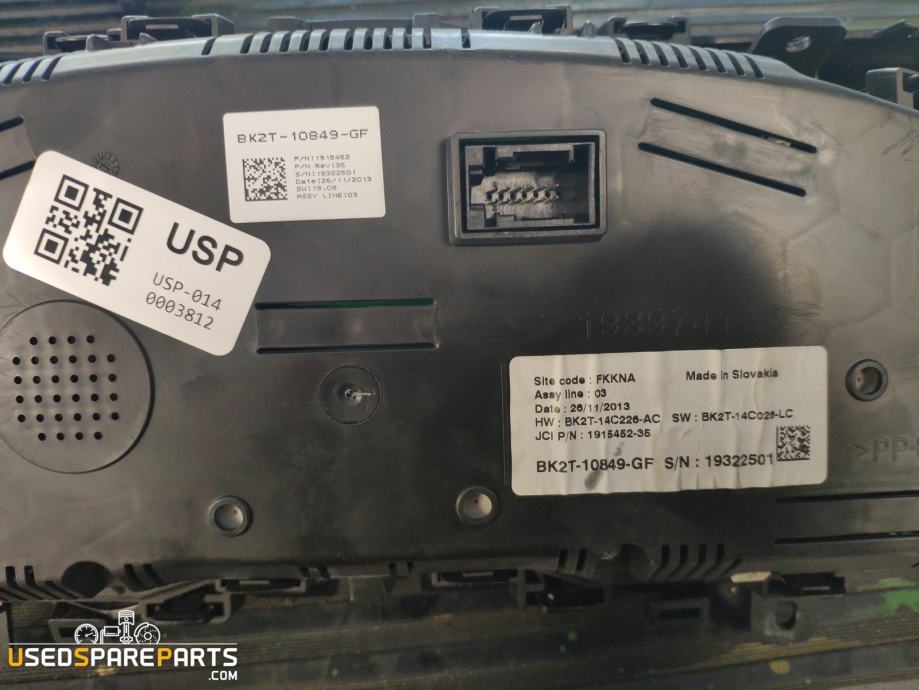 Prikazovalnik instrumentov je del notranjosti vozila, ki prikazuje različne informacije o vozilu, kot so hitrost, števec kilometrov, temperatura motorja, tlak olja in drugo. Ta del je pomemben za varno in učinkovito vozno izkušnjo. Prikazovalnik instrumentov z oznako BK2T10849GF je primeren za vozila Ford Transit Custom 2.2 TDCi iz leta 2014 in je na voljo z 12-mesečno garancijo.Znamka: Ford