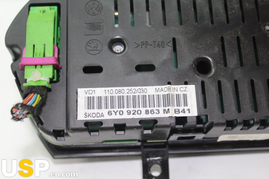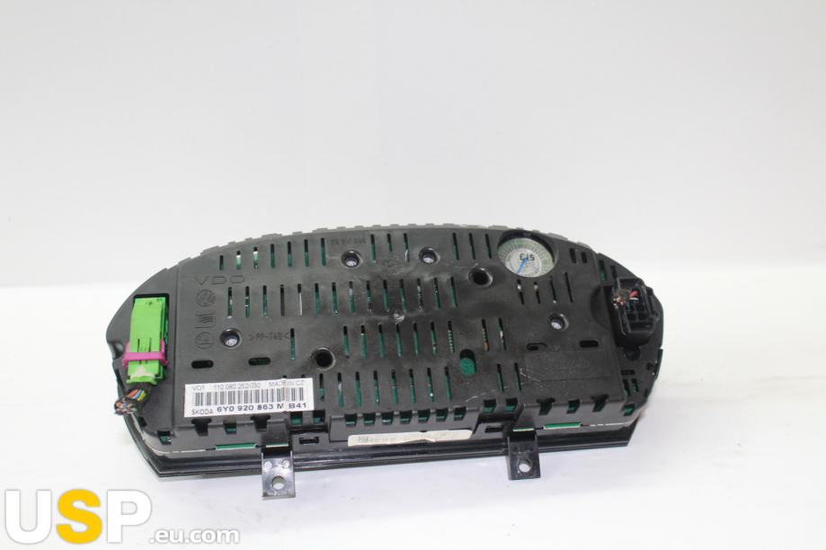 Kontrolna plošča za Škodo Fabio Mk1 (6Y) je elektronski del, ki vključuje hitrostomer in druge instrumente. Ta del nosi številko 6Y0920863M in je namenjen za sledenje vozilnih podatkov, kot so hitrost in drugi pomembni kazalniki. Je ključni del za zagotavljanje vozilnim uporabnikom nujnih informacij med vožnjo.Znamka: Skoda
