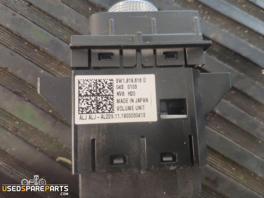 Stikalo glasnosti zvoka je del avdio sistema v vozilu, ki omogoča uporabniku nastavitev glasnosti zvoka. Deluje kot kombinacija gumbkov in stikal, ki so uporabljeni za upravljanje radijskega sistema v vozilu z oddaljenim radijskim kontrolnim sistemom. Ta del je primeren za vozila Audi A4 B9 in A5.Znamka: Audi
