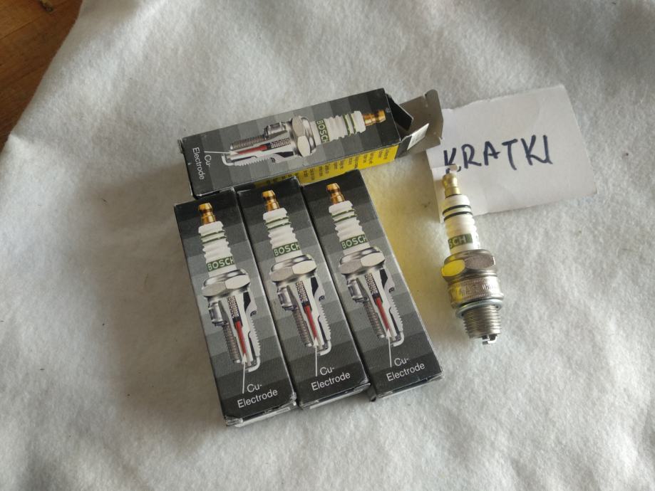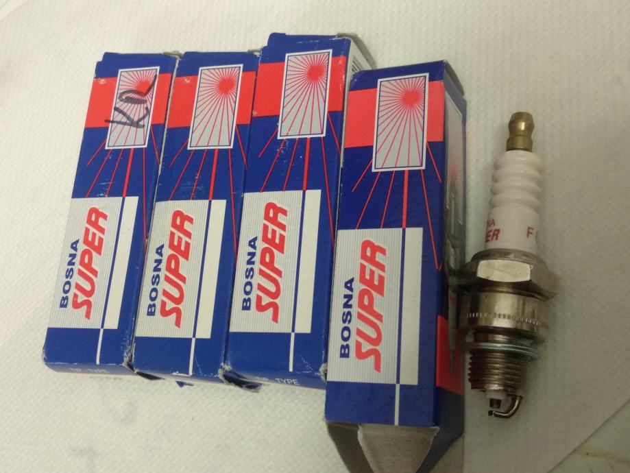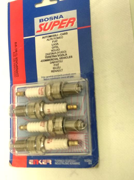 Nove svečke 4 kom - kratki navoj - za Zastava 750 Fička. Na voljo so tudi svečke Bosna Super kratki in dolgi navoj - cena za kom 8€.