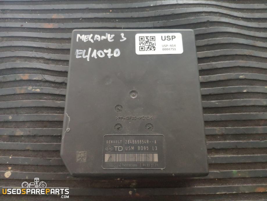 Modul zaščitnih stikal (USM MODUL) je elektronska komponenta, ki služi kot varnostni sistem za zaščito električnih sistemov vozila pred prekomernim tokom. V primeru prekomernega toka, modul prekine tok in tako prepreči poškodbe električnih sistemov vozila. Ta del je posebej zasnovan za Renault Megane III Coupe iz leta 2011 in ima številko dela 284B69854R.