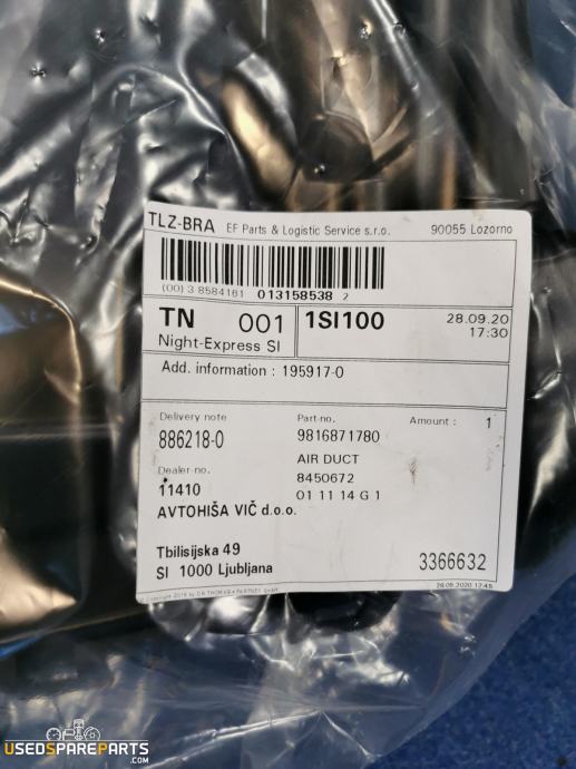 Usmerjevalnik zraka je del avtomobilskega sistema za hlajenje in prezračevanje, ki usmerja zrak proti hladilniku ali drugim delom vozila. V primeru tega dela, ki je označen kot 'USMERJEVALNIK ZRAKA/PLASTIKA PEUGEOT', gre verjetno za plastikasti del, ki je namenjen usmerjanju zraka v sistemu za hlajenje vozila. Ta del je pomemben za učinkovito hlajenje motorja in drugih kritičnih delov vozila, kar prispeva k boljšemu delovanju in varnosti vozila.Znamka: Peugeot