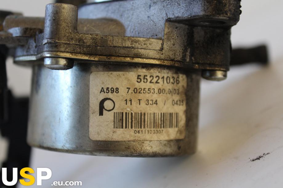 Vakumska črpalka z delovnim številom 55221036 je ključni del zavornega sistema, ki zagotavlja vakuum za delovanje zavor. Uporablja se v vozilih Lancia Ypsilon II in Fiat Doblo. Je pomemben komponent za varno delovanje zavor, saj omogoča ustrezno moč zavor pri uporabi. Črpalka je mehansko delovna in ima dve priključki.Znamka: Lancia