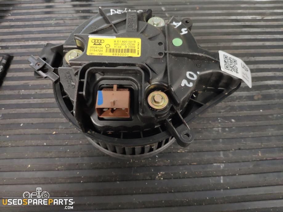 Ventilator kabine z oznako 8E1820021B je ključni del sistema ogrevanja, prezračevanja in klimatizacije (HVAC) v vozilih Audi A4, S4 in RS4 letnikov 2002-2009. Ta električni motor poganja ventilator, ki ustvarja pretok zraka skozi sistem HVAC in v potniško kabino. Nameščen je za armaturno ploščo na sovoznikovi strani. Zagotavlja ustrezno kroženje zraka, hlajenje in ogrevanje v notranjosti vozila. Pravilno delovanje tega dela je ključno za udobje potnikov in učinkovito delovanje klimatske naprave. V primeru okvare se lahko pojavi zmanjšan pretok zraka ali popolna odpoved sistema HVAC.Znamka: Audi