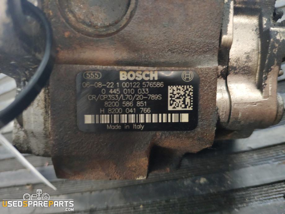 Visokotlačna črpalka za dizelsko gorivo z oznako 0445010033 je namenjena za vozila Renault Master 2.2/2.5 DCI, Renault Laguna II 2.2 DCI in Renault Espace IV 2.2 DCI. Ta črpalka je del sistema Common Rail in je zasnovana za visokotlačno črpanje dizelskega goriva. Uporablja se v vozilih, ki so bila proizvedena med letoma 2000 in 2012. Črpalka je pomemben del sistema za gorivo in je potrebna za pravilno delovanje motorja.Znamka: Renault