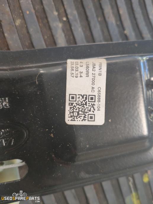 Vodilo dviga stekla je del avtomobilskega sistema, ki omogoča dvig in spuščanje zadnjega stekla vozila. To vodilo je posebej zasnovano za vozilo Range Rover Velar in se uporablja za desno zadnje steklo. Deluje v kombinaciji s sistemom za dvig stekla in omogoča gladko in varno delovanje. Vodilo dviga stekla je pomemben del avtomobilskega sistema, ki zagotavlja udobnost in varnost pri uporabi vozila.Letnik: 2019