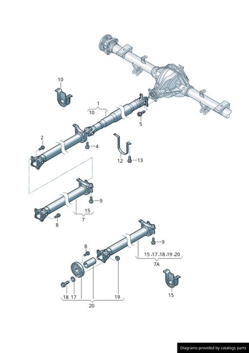 OE: 2N0521101J; ID: 1232 Dolžine: prednji, L=1271mm, gumijasti zglob ( Kardan na sliki pod št.7)
