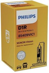 Xenon žarnica D1R Philips Vision - PH85409VIC1. Lastnosti: napetost 85V, nazivna moč 35W, Pk32d-3. Žarnica zagotavlja boljšo vidljivost na cesti, saj v primerjavi z ostalimi ksenonskimi žarnicami proizvede za 30% več svetlobe. Barvna temperatura s 4400K osvetljuje tudi najmanjše podrobnosti.
