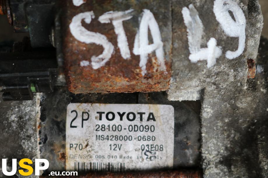 Zaganjač motorja je ključni del, ki omogoča zagon motorja. Deluje tako, da se pri vklopu ključa v stikalo za zagon motorja, zaganjač aktivira in vrne nazaj v prvotno lego, ko motor začne delovati. Zaganjač je pomemben za zanesljiv zagon motorja in je pogosto potreben za zamenjavo, kadar se pokvari.Znamka: Toyota