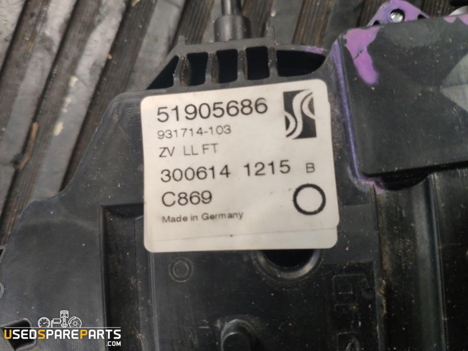 Zaklep vrata spredaj levo je mehanizem, ki omogoča zaklepanje in odklepanje vrata vozila. Ta del je pomemben za varnost vozila in njegovih potnikov. Zaklep vrata spredaj levo z delovno številko 51905686 je primeren za vozila Fiat Grande Punto iz leta 2013. Del je lahko uporabljen tudi za druge modele Fiat, ki imajo podobno konstrukcijo vrata. Zaklep vrata spredaj levo je sestavljen iz več delov, vključno z zaklepnim mehanizmom, ključem in elektromotorjem. Del je lahko nameščen na vozilo s pomočjo profesionalnega mehanika ali samostojno z uporabo ustrezne opreme in navodil.