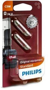 Žarnica C5W Philips - PH13844B2 (2 kosa). Lastnosti: podnožje SV8,5, nazivna moč 5W, napetost 24V.