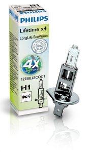 Žarnica Philips H1 LongLife EcoVision - PH12258LLECOC1. Lastnosti: napetost: 12V, 55W P14,5S.