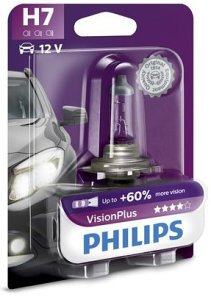 Žarnica Philips H7 VisionPlus - PH12972VPB1. Lastnosti: napetost 12V, nazivna moč 55W, PX26D. Žarnica proizvede do 60% več svetlobe.