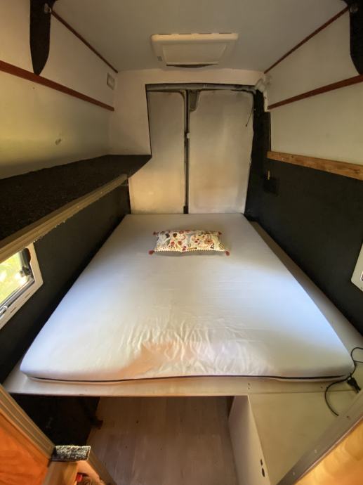 - spalnico v zadnjemu delu kombija (ležišče širine do 180cm) z večjo polico za shranjevanje oblačil. Pod posteljo je zelo velik "storage space", ki si ga lahko poljubno pregradite.
