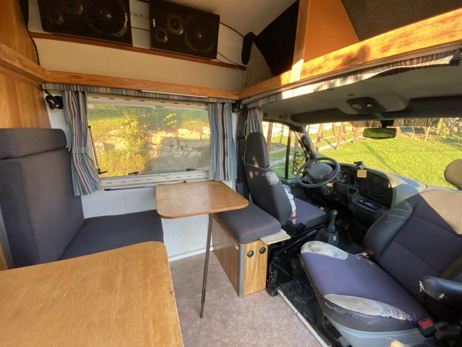 - dnevni prostor z dvema klopema in snemljivo mizo (se lahko spremeni v ležišče za osebe do 175cm)