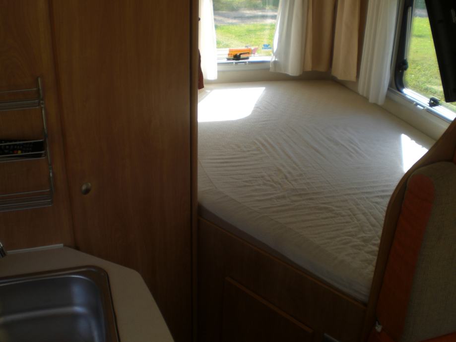 Opremljen je z jedilnim proborom, krožniki, kozarci, skodelicami, termo pokrivalom za vozniško kabino, izravnalnimi klini, predpražnik 2x3 m, 20m cevi za vodo, 30m priključnega kabla za elektriko, 2 jeklenki za plin.