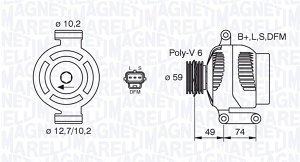 Alternator Fiat Mondeo. Letnik: 00-07. Lastnosti: Napetost 12 V. Alternator-polnilni tok 124 A. Premer jermenice 59 mm. Vrtenje v smeri urinega kazalca. Z jermenico za rebrasti jermen.