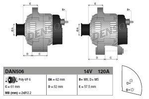 Alternator Opel Astra, Signum, Vectra, Zafira. Lastnosti: Napetost 14 V. Alternator-polnilni tok 120 A. Število reber 6. Premer jermenice 62 mm. Z jermenico za prosti tek. Za vozila s 12V omrežjem.