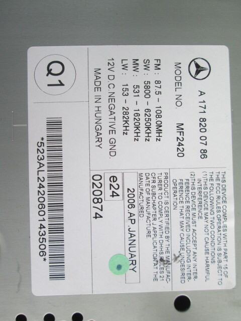 MERCEDES BENZ SLK (2004-2008) RICAMBIO AUTORADIO (NON FORNIAMO CODICE AUTORADIO, SOLO QUELLO IDENTIFICATIVO VEICOLO) A1718200786
