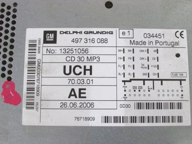 RADIO CD / OJACEVALNIK / IMETNIK HIFI OEM N. 13251056 ORIGINAL REZERVN