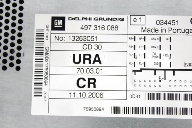 RADIO CD / OJACEVALNIK / IMETNIK HIFI OEM N. 13263051 ORIGINAL REZERVNI DEL OPEL ASTRA H A04 L48 L08 L35 L67 R 5P/3P/SW (2007 - 2010) DIESEL LETNIK 2007