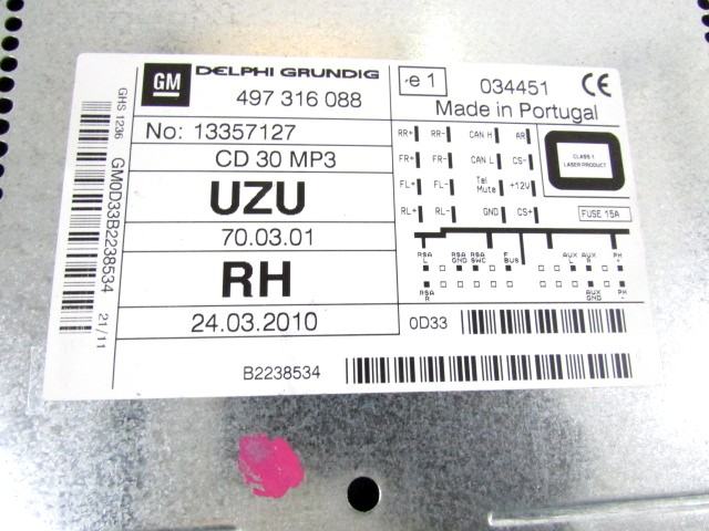 RADIO CD / OJACEVALNIK / IMETNIK HIFI OEM N. 13357127 ORIGINAL REZERVNI DEL OPEL CORSA D R S07 (02/2011 - 2014) BENZINA LETNIK 2012