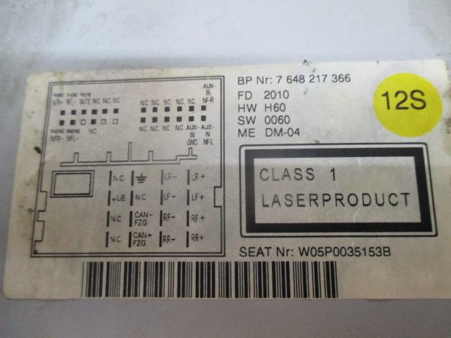 RADIO CD / OJACEVALNIK / IMETNIK HIFI OEM N. 5P0035153B ORIGINAL REZERVNI DEL SEAT ALTEA XL 5P8 R (2009 - 2015) DIESEL LETNIK 2010