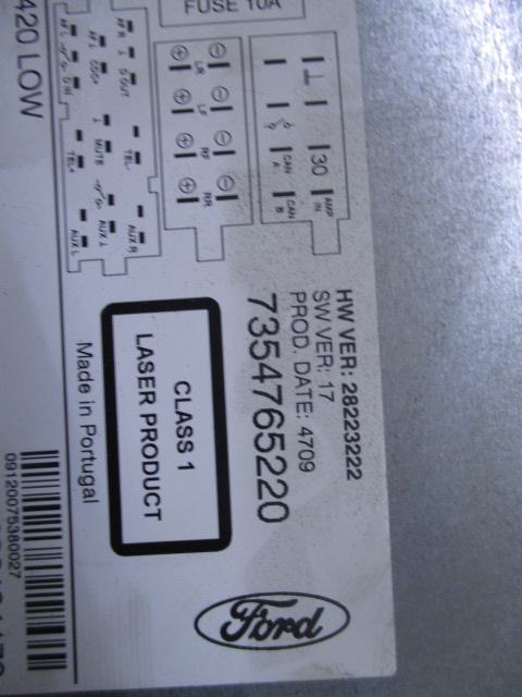 RADIO CD / OJACEVALNIK / IMETNIK HIFI OEM N. 7354765220 ORIGINAL REZERVNI DEL FORD KA RU8 MK2 (2008 - 2016) BENZINA LETNIK 2010
