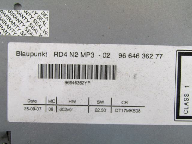 RADIO CD / OJACEVALNIK / IMETNIK HIFI OEM N. 9664636277 ORIGINAL REZERVNI DEL PEUGEOT 407 6C 6D 6E BER/SW (2004 - 06/2008) DIESEL LETNIK 2008
