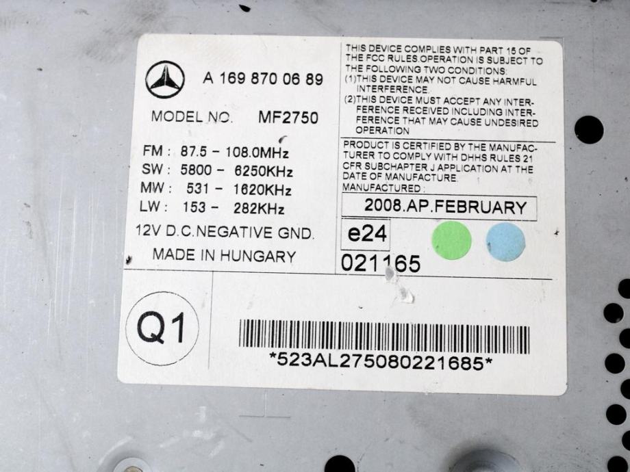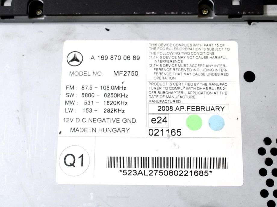 RADIO CD / OJACEVALNIK / IMETNIK HIFI OEM N. A1698700689 ORIGINAL REZERVNI DEL MERCEDES CLASSE B W245 T245 5P (2005 - 2011) DIESEL LETNIK 2008