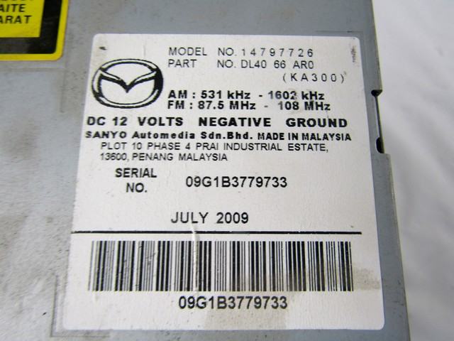 RADIO CD / OJACEVALNIK / IMETNIK HIFI OEM N. DL4066AR0 ORIGINAL REZERVNI DEL MAZDA 2 DE DH MK2 (2007 - 2014) BENZINA/GPL LETNIK 2009