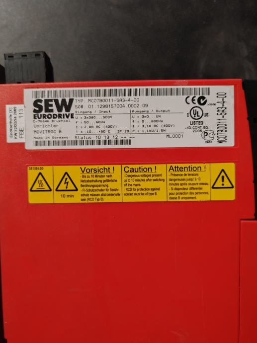 Prodam frekvenčni pretvornik proizvajalca sew eurodrive tip: MC07B0011-5A3-4-00
