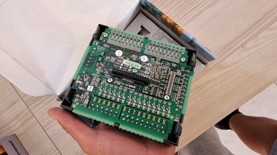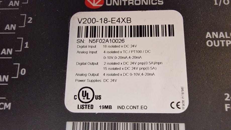 The V200-18-E4XB plugs directly into the back of compatible Unitronics OPLCs, creating a self-contained PLC unit with a local I/O configuration.