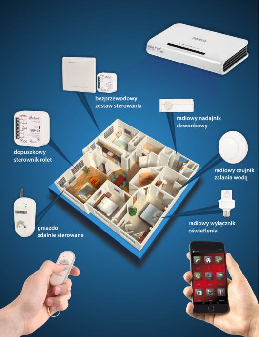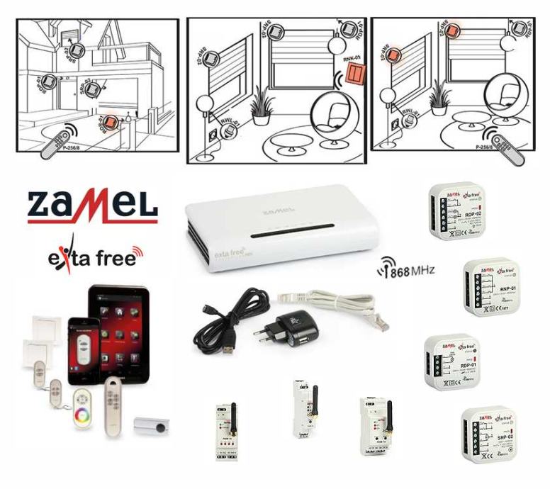 Priznani proizvajalec elektro opreme zamel predstavlja rešitev avtomatizacije doma z možnostjo kombinacije navadne inštalacije, avtomatskega krmiljenja preko aplikacij oz. krmiljenje preko RF baterijskih daljincev ali stikal. Za individualno uporabo potrebujete le krmilnik in daljinski upravljalec med tem ko za celotno združitev sistema je potrebna krmilna bazna centrala, ki združuje vse vrste krmilnikov, senzorjev, daljincev in standardnih stikal z možnostjo uporabe na lokalnem ali daljinskem nivoju. Centralna kontrolna postaja Zamel extra free EFC-02 delovanje z krmilniki na 868.32MHz baza za nadzor sistema na daljavo ali lokalno preko Mobilnih naprav oz. PC