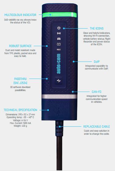 (SAE J2534) edinstven protokol, ki omogoča povezovanje vmesnika Autocom ICON z OEM programsko opremo;