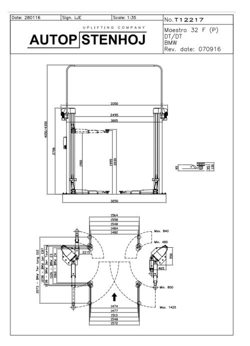 Dvosteberno elektro mehansko dvigalo z rokami izvedbe spredaj ST (540-850 mm) ter zadaj ST (900- 1425 mm) je primerno za servisiranje osebnih vozil. Dvigalo je asimetrične izvedbe, zato omogoča večji kot odprtja vrat vozila. Nosilnost 3200 kg. Dvigalo ima dva elektro motorja (2 × 2,8 kW) ter elektronsko sinhronizacijo dviga, dvigalo je brez talne povezave, dvigalo ima hladno valjani vreteni in matice iz posebne visoko odporne zlitine to zagotavlja dolgo življenjsko dobo in izjemno nizke stroške vzdrževanja in obratovanja.