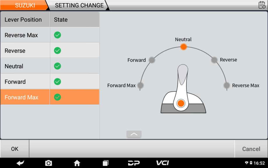 4. Samodejno skeniranje, konfiguracija aktivnega trima, konfiguracija GPS aktivnega trima, konfiguracija pomožne igralne palice, simulator BCM, konfiguracija kompasa, inicializacija naprave, poravnava pogona, nastavitev krmila, nastavitev primerka, nastavitev vzdrževanja, ponastavitev Merc TDS, ponastavitev daljinskega upravljalnika, nastavitev lokacije motorja, nastavitev tach povezave, nastavitev meje nagiba, konfiguracija SMUX, centriranje volana, Kalibracija sistema, nastavitev navora, konfiguracija sledilne ploščice, osebnost plovila in druge funkcije.
