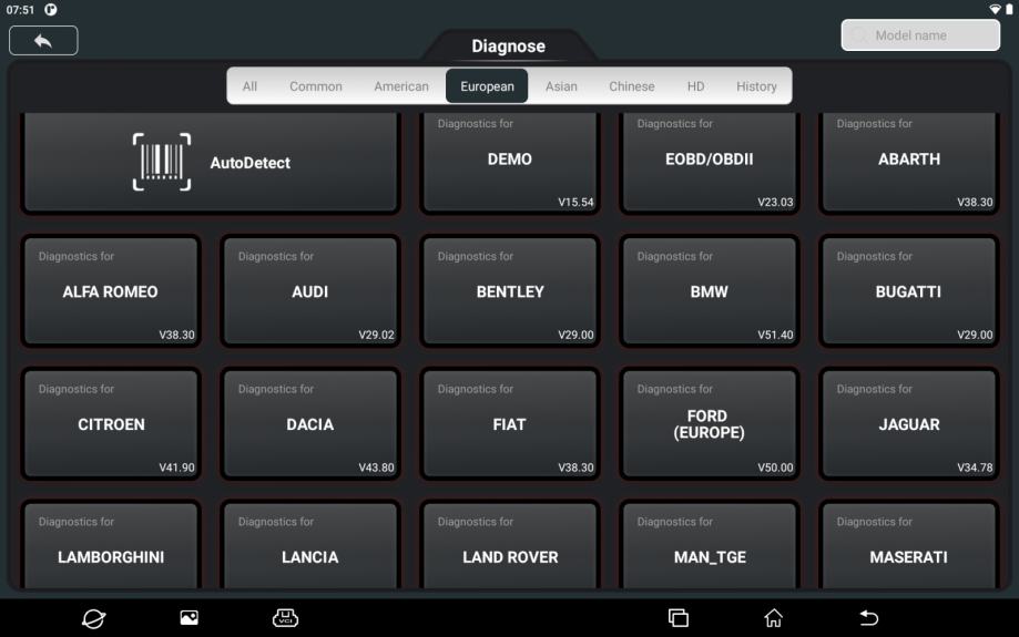 Pametni AutoVIN & AutoScan: AutoVIN bo v mnogih primerih samodejno prepoznal znamko/model/leto avtomobila in se usmeril k pravilni diagnostiki, v primerih, ko ne prepozna AutoVIN vozil, pa lahko še vedno uporabite standardno ročno metodo izbire pravilnih podatkov o vozilu