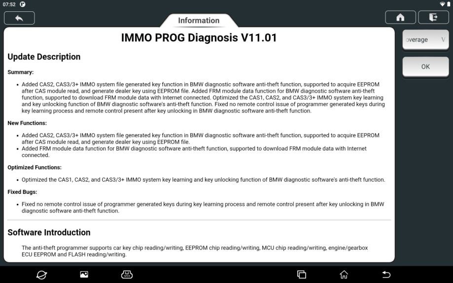 Posebne funkcije/prilagoditve: ogromen nabor posebnih funkcij/prilagoditev za številne znamke in modele, podpira posebne funkcije, kot so imobilizator in kodiranje ključev, kodiranje injektorjev, ponastavitev odzračevanja zavor, ponastavitev TPMS, ponovno učenje elektronskega plina, ponastavitev DPF, ponastavitev SAS, ponastavitev olja , ponastavite zavore, ponastavite BMS itd. za veliko število vozil