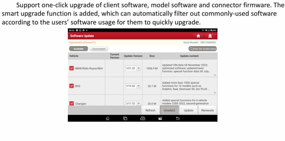 Podpira inteligentno identifikacijo VIN za hiter diagnostični vnos Hitra in natančna diagnoza.