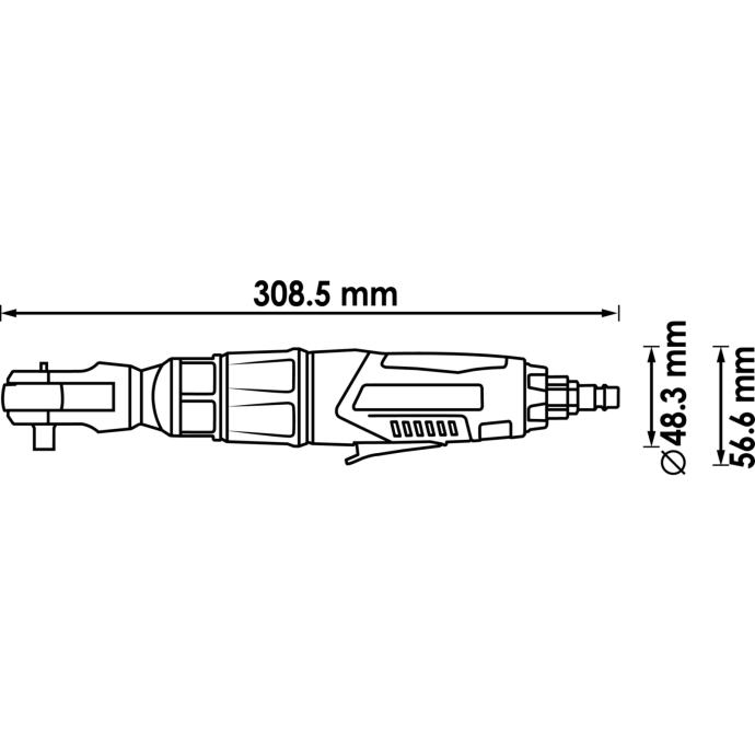 Izjemno pririočna pnevmatska račna za natična orodja velikosti ½”. Posebej primerna za mesta kjer primanjkuje prostora.