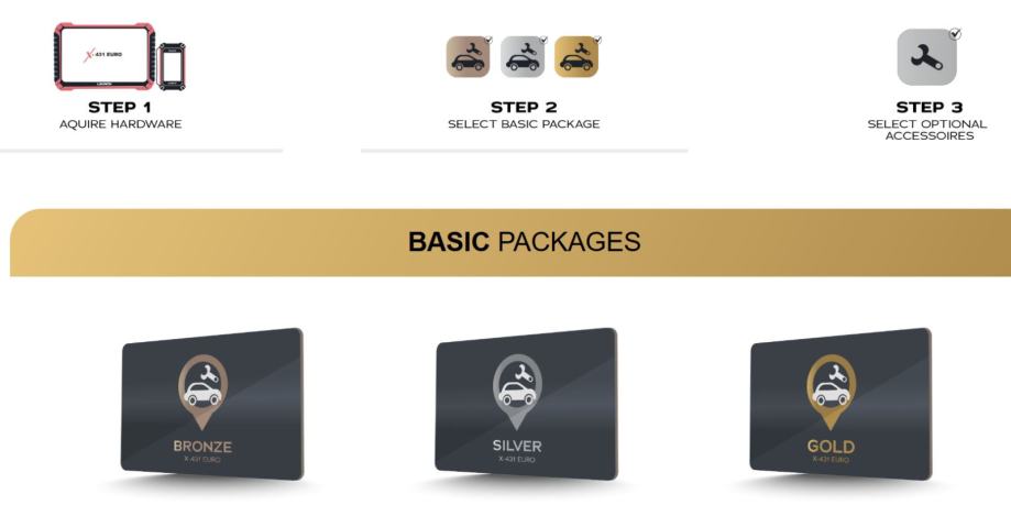 - Razširitev s programsko opremo, dodatnimi moduli in dodatki: HD programska oprema za tovorna vozila, programska oprema za motorna kolesa, ADAS, X-PROG, Scopebox, Sensorbox, TPMS, EV oprema in še mnogo več
