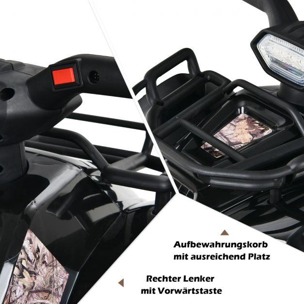 Več zabavnih funkcij: LED žarometi, glasba in hupa lahko vašim otrokom prinesejo dodatno zabavo med vožnjo. MP3 in vrata USB nudijo otrokom več pesmi in glasbe, med katerimi lahko izbirajo. Poleg tega sprednja škatla za shranjevanje omogoča otrokom, da začnejo svojo avanturo s svojimi najljubšimi igračami.