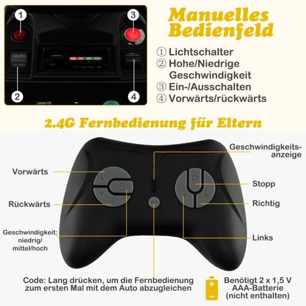 Privoščite svojim otrokom zanimivo otroštvo s tem traktorjem za vožnjo! Ta otroški bager je opremljen s prikolico, žlico za izkopavanje in žlico za bager, ki ponuja več načinov igranja. Te dele lahko po potrebi tudi odstranite. Ko si vaš otrok pripne varnostni pas, lahko uživa v srečni vožnji z vgrajeno glasbo, zgodbo ali zgodnjim izobraževanjem. Svetli žarometi osvetljujejo pot tudi ponoči. Koordinacija rok in oči se trenira med igranjem. Ne samo, da lahko traktor upravljajo otroci, temveč lahko smer in hitrost traktorja upravljajo tudi starši preko daljinskega upravljalnika. Poleg tega uporabljen vrhunski PP material zagotavlja tudi dolgotrajno uporabo.