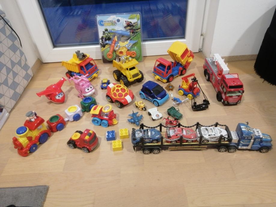 Prodam lepo ohranjene avtomobile za igro. Motor je še original zapakiran. Vlakec pa se premika in pridejo zraven 3 vagoni. Vse skupaj prodam za 20€. Tel:070 379 679
